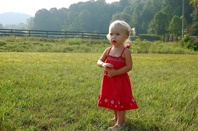 We also enjoyed some traditional "Boone" fun. We went to the Mast General Store & bought candy and Alathea her very own toy horse (she was thrilled!). Then on Labor Day we all hiked to these local falls. They were beautiful. The fun part was the huge swimming hole. Despite the ice cold water, all the boys loved the rope swing. Most of the girls simply "watched", but Lizzy & I got the guts up to go down the natural rock water slide. It was SO FUN!! As cold as I was, I'm really glad I did it. The locals said we win an award for the first Charlotteans to do that (I know thats not true, but its a nice pat on the back :) As much fun as Alathea had, the only thing she didn't like was the swimming hole. WAY too cold for her little body. She just played with the rocks. What a fun little adventure we had. Our first to the Mt's since Alathea has been born.